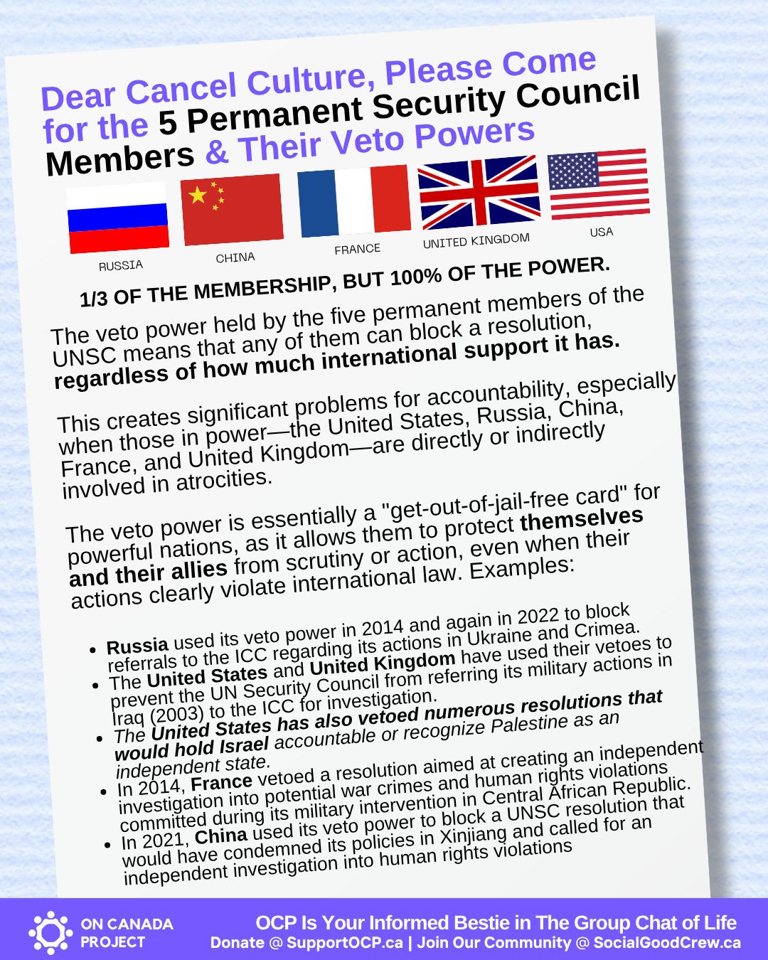 The last federal election wasn’t a landslide—it was a scrape-by. Carney won with 169 seats to the Conservatives’ 144. A few thousand votes in key ridings could have flipped the outcome. That means nearly half this country voted for a party explicitly opposed to enforcing international law when it conflicts with their geopolitical alliances. Pierre Poilievre didn’t become Prime Minister, but the Conservatives pulled in enough seats to show that rejecting accountability has massive political support in Canada.